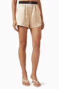 يجمع هذا البوكسر بين الطابع المريح واللمسات الأنيقة، فهو مصنوع من ستان شارموز مطاطي وخفيف الوزن بملمس حريري ويتميز بقصة فضفاضة للحصول على حرية الحركة ما يجعله إضافة عصرية على ملابس الاسترخاء التقليدية.