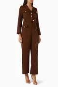 يجمع جمبسوت ليلي من نوت بوك بين التصميم العصري والرقي الكلاسيكي، فهو مصنوع من كريب ناعم ويتميز بياقة بطية على شكل حرف V وجيوب بغطاء قلاب تعزز من طابعه العملي، كما يغلق بأزرار في الأمام لإطلالة عصرية، ويأتي بقصة ضيقة تجعله خيارًا أنيقًا لإطلالتك في مختلف المناسبات.
